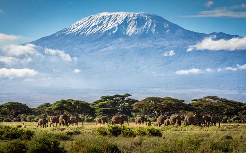 Mount Kilimanjaro is the crown of Tanzania. The view of this majestic mountain's gigantic snow-capped summit dome, rising high above the surrounding savanna is one of Africa's classic images . At 5895 metres (19,340 ft), Kilimanjaro is the highest mountain in Africa, and one of the highest volcanoes in the world, attracting trekkers and climbers from every corner of the world. The attraction is even greater because with time and adequate preparation, it is possible to walk all the way to the summit without technical mountaineering equipment or experience.